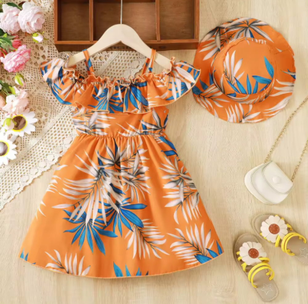 يأتي هذا الفستان المكشوف الأكتاف بتفاصيل أنيقة ولون برتقالي مشرق يعكس روح الصيف، ليكون خيارًا مثاليًا للنزهات والمناسبات العائلية.
